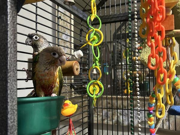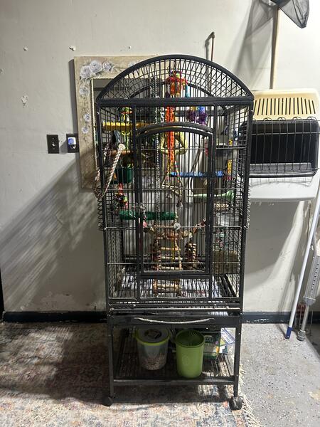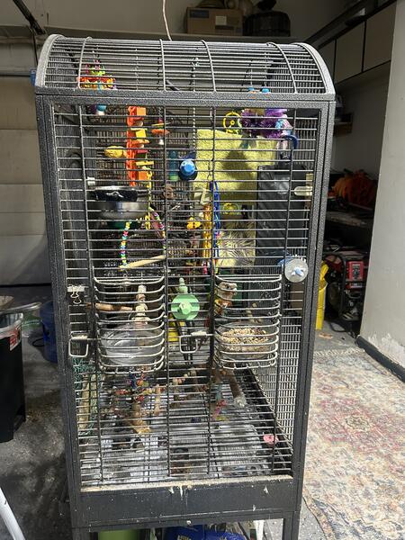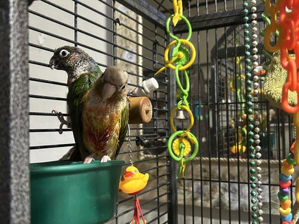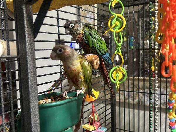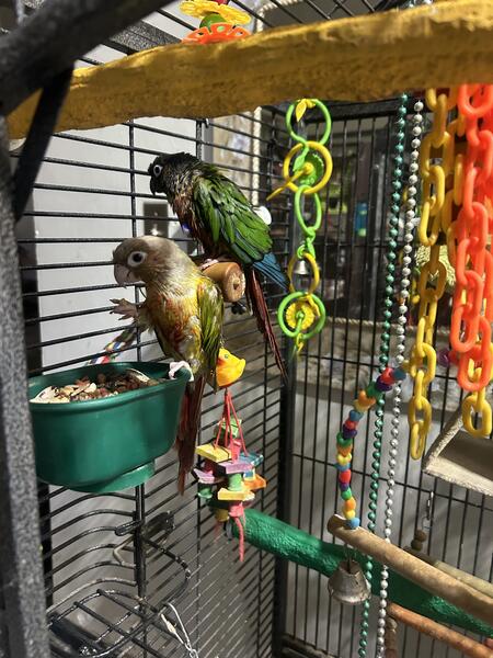 message samwayne about this ad 2 conures the cage everything in the cage and whatever food I have on hand at time of pick up. Also have carrier for travel. The darker one is 3 yrs old and the light one is about 7 months younger at least one of them is a female but Ive never had them sexed. They need a lot of attention and I work all the time now. |