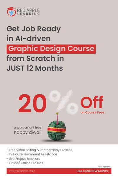 message redapplelearning about this ad Diwali Special Offer- Get 20% Off on Course Fees Learn AI-enabled Graphic Design Course & Get Job Ready in JUST 12 Months You'll Get: Free Video Editing & Photography Classes In-House Placement Assistance Live Project Exposure Online/ Offline Classes & much much more Use code "DIWALI20 & Get 20% Off on Course Fees Limited Seats- Apply Now WhatsApp/ Call: 062896 90050 Visit: #redapple #redapplelearning #GraphicDesignCourse #diwalispecial #oncoursefees #diwali #khusiyaan #career #sector5 #successful #success #DiwaliOffer |