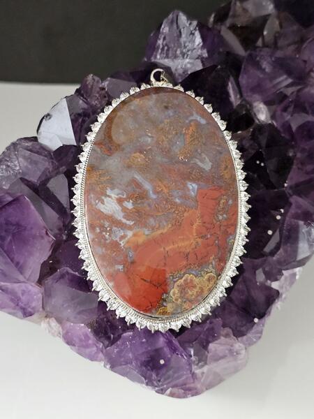 message atefeh about this ad Handmade Jeweled Silver Pendant with Autumn Agate, Rhodium Plated, Large and Collectible. Approximate Weight: 48.98 grams Approximate Dimensions: 70 mm*50 mm Price: 263 AUD Posting costs are the responsibility of the customer. |