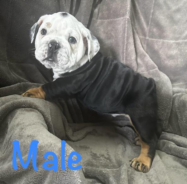 message jolene about this ad Black Tri Color Male English Bulldog. Laid back temperament, but still will play when given one on one time with adult dog. Very lovable Born 4-8-24 Comes with Papers, UTD on shots and health checks. CASH ONLY NO TRADES! |