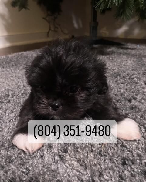message officialpocketpups about this ad This listing is an edited old listing because it wont let me post a new one! Posting on 2/19/25! I have one male black shihtzu puppy- 8 weeks old now. First shots and deworming completed. If you ask me for more photos I will have my phone number in them. I do this to dissuade scammers. If youd like to video chat Im more than happy to. No deposits, no holds. In the very rare instance that I allow holds I do take deposits. |