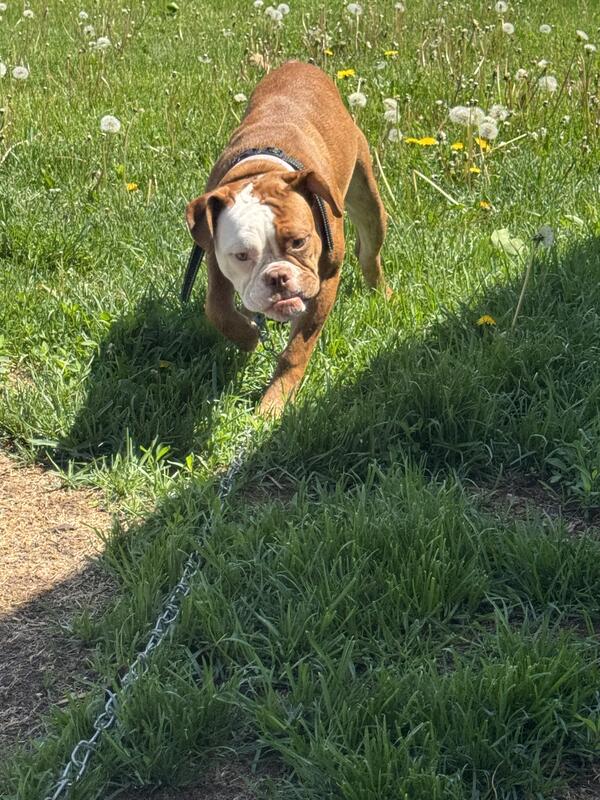 message arnold15 about this ad Meet River She is a 1 year old Olde English Bulldogge with a goofy grin and a big heart! Shes potty and crate trained (and comes with her crate, bought last month River loves tug of war, toys and being part of the fun. She gets anxious with loud noises like vacuums or RC cars, so shed do best in a calmer home with older kids. She adores other dogs but plays rough & our dog doesnt enjoy her bulldog wrestling style. So shed do best as the only pet or with a tolerant, equally playful buddy. NO CATS. She still needs her shots and to be spayed and has two small cyst like bumps on her head she came with. River will thrive with a fenced yard, structure and someone who appreciates her silly, loving spirit. |