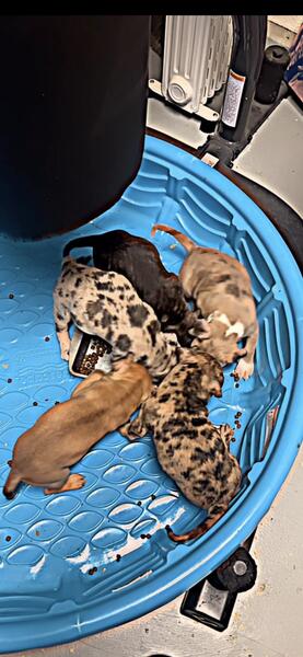 message mrchann93 about this ad Beautiful Merle Pups currently 6 weeks old Prices range from 800.00 and up. Message me thanks. 5 pups total pups marked are all girls 4 girls 1 boy is remaining |