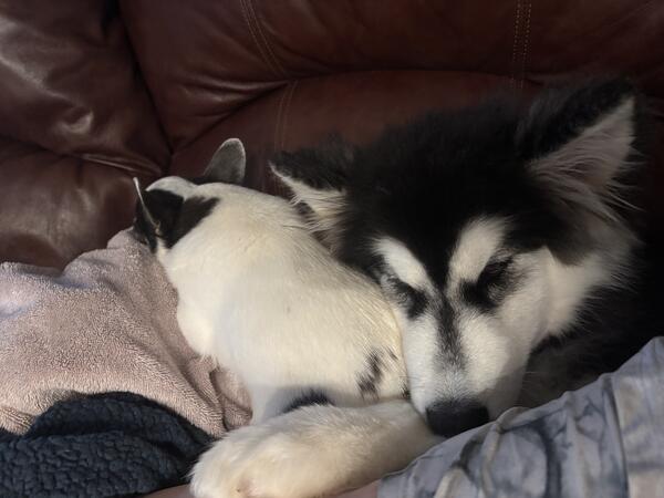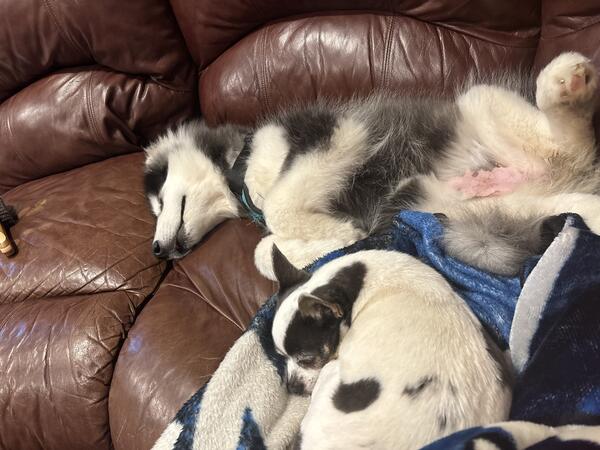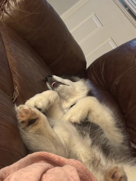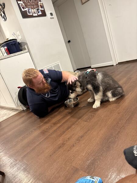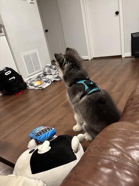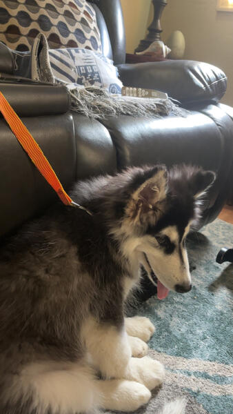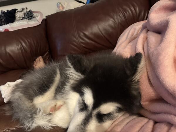 message kayykayy97 about this ad 4 month old female Alaskan malamute puppy . Great with other dogs & cats ! ( we feed her separate from our small dogs though- she just eats in her crate when its dinner time) ! LOVES being outside ! Scared of loud sounds though ! She has not been fixed ! She had her shots last month & her flea/tick treatment was done today(10-06-25) ! She comes with CKC registration papers. She comes with her crate, food & water bowl, toys, harness & leash & her shot records too! asking 800 but its negotiable |