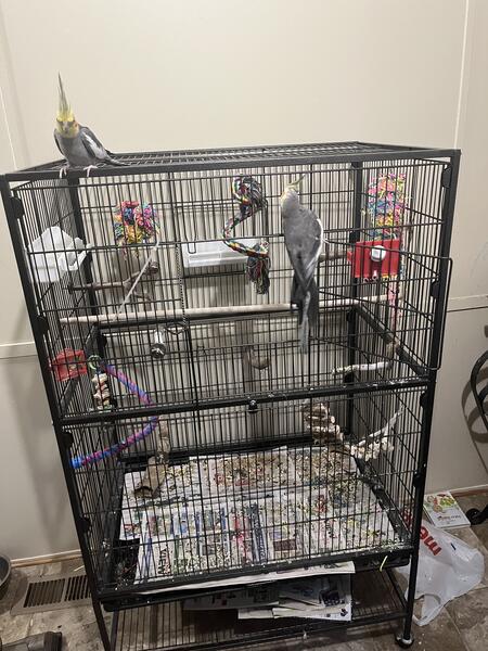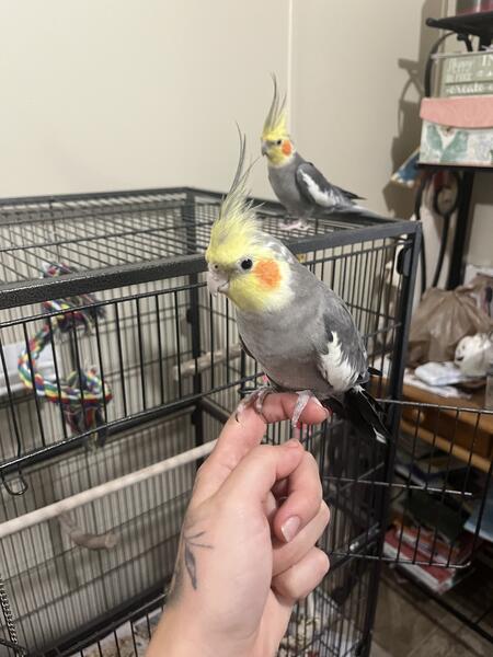 message bbykatich7789 about this ad Two males! One is a year and one is 2 years ABOUT. Joey is more distant he doesnt like to be touched but will land on your head from time to time. Frankie is a sweetie he loves to be scratched and held but still hasnt figured out how to fly like his brother my boyfriend has developed a allergy to them and I am moving in with him soon . Im hoping to find a nice living home for both boys . They dont have to go together text me for more info on them if you are interested 8109633699 |