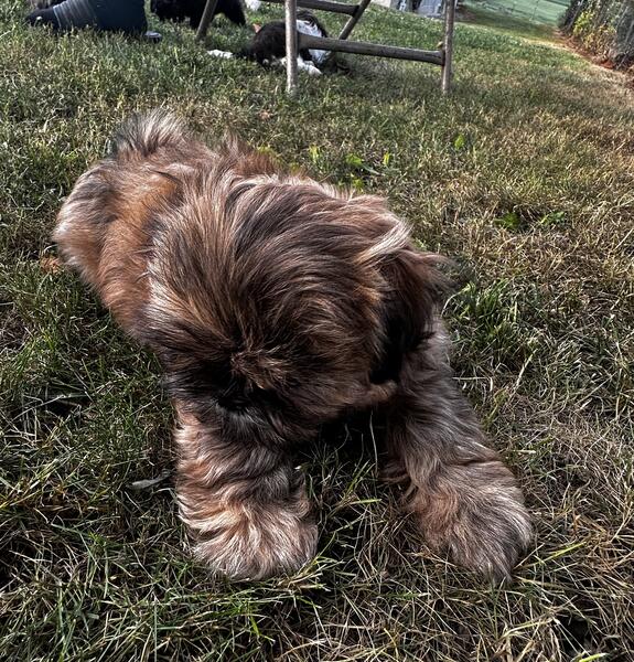 message nlpbutterfly about this ad I Have some beautiful registered puppies ,they have been vet , they have been vet checked and had their, first shot and wormed . They are very, very healthy and have been home raised in our home. They have gorgeous coats and are very well bred. I have a variety of colors, including Brindle's, Liver and White and gold and white , males and females They are well on their way to being potty trained |