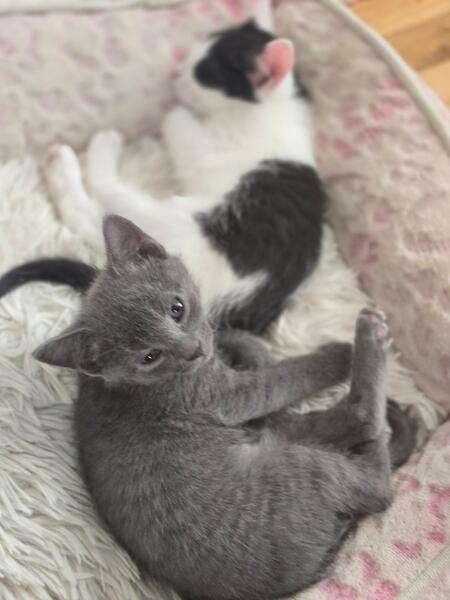 message pnmgr8619 about this ad Our last two kittens are available for pick up this weekend. We have a black and white boy (we call him Nova for Casanova) and a gray girl (we call her Fiona They are 7 1/2 weeks now and weaned from mama (we have both parents Pick up in Henrico area. |