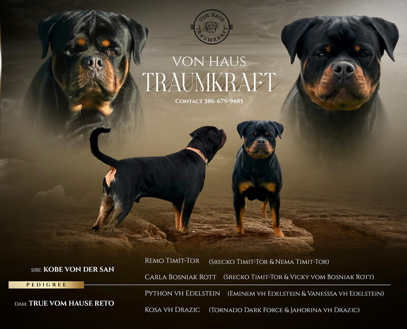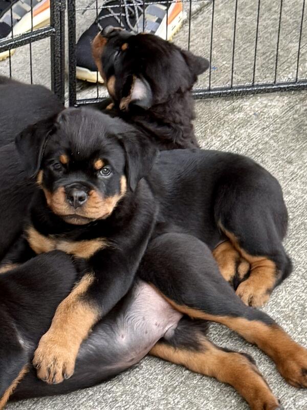 message traumkraft about this ad Rottweiler puppies from champion bloodlines bred for temperament and health. They have strong heads and solid bone structure. They are AKC registered already. Come with health certificate and health guarantee. |