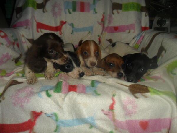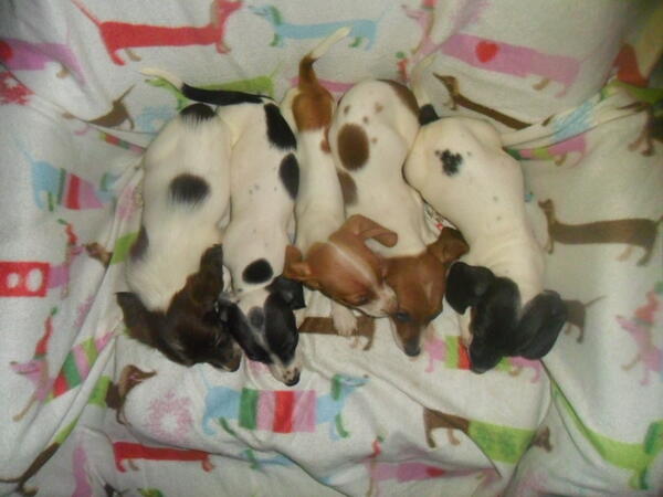 message madisonbear about this ad THE PUP IS TENTATIVELY PLACEDWAITING FOR GOD TO SEND US MORE Born on 7/27, will be available on or after 9/21. Come with Puppy shots and de-wormed as a precaution. ONLY THE SECOND ONE FROM THE LEFT A FEMALE IS AVAILABLEmost are short hair, while all are smooth coats. Parents are on the premises. To reserve a Pup, you must have the love, time and resources to well care for them. Prefer to place in easy driving distance of Cincinnati, Ohio, however for the right people will consider placing Pups to people who live further away. Thanks for looking, first come first served, No deposits are necessary. C.O.D. only please. Willy Lee and Whitey Lee, dad and mom are pictured |