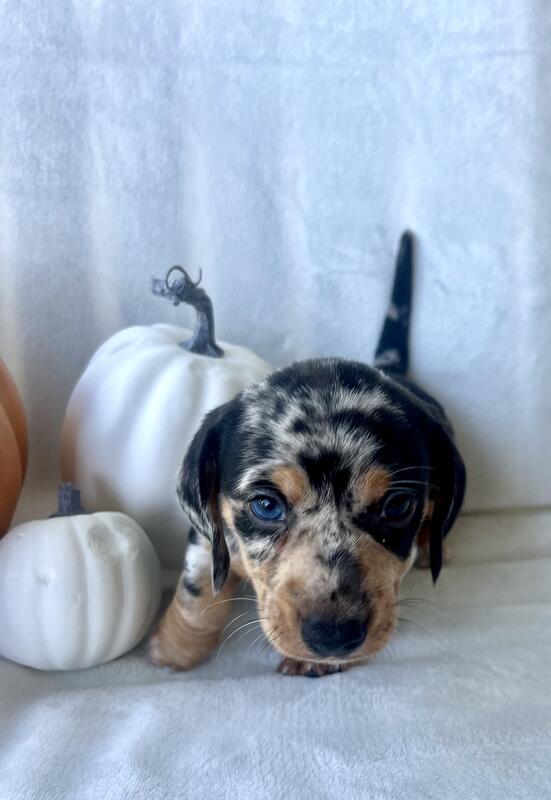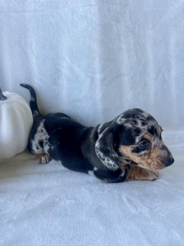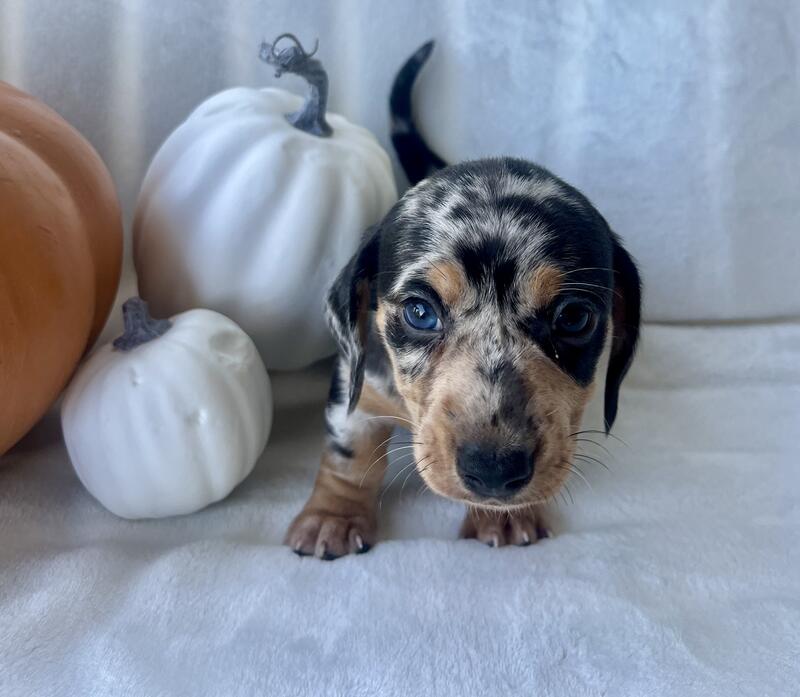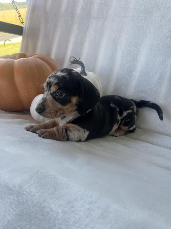 message mh27 about this ad This cuddly little guy will be ready for his forever home on 10/20/25. He is a registered mini Dachsund. His mom is a short haired mini weighing around 10lbs and dad is a short haired mini weighing around 12-13lbs so this little guy will be between that range. He will have a short hair coat and is a dapple. He is ACA registered and will go home with papers and a baggie of the puppy food he is eating. He will require a loving home who will show him lots of love and attention. If you think he would be a good fit for your family and home, we are currently taking deposits of half down to hold until he is 8 weeks and ready to go. Thank you! |