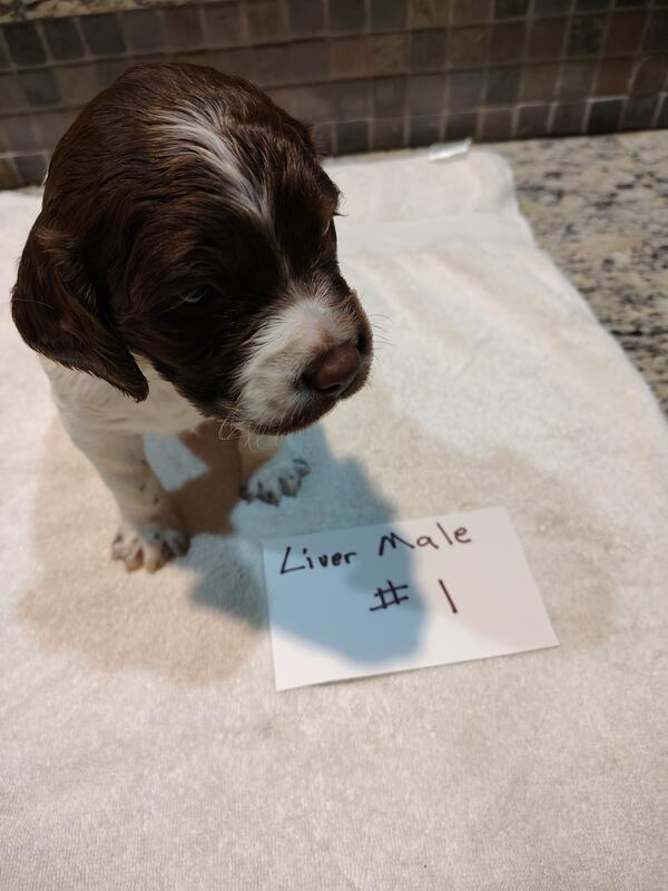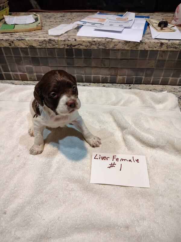Brittany pups 2 males born 8/30/25, AKC, will have all shots, dews and tails docked. Own both parents.