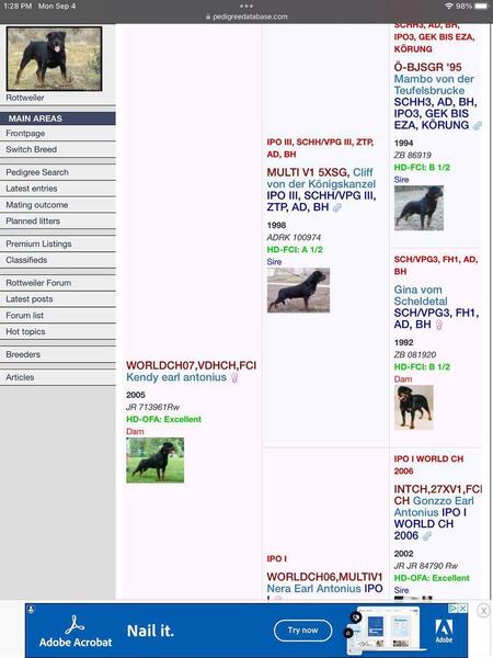 message rottiemom99 about this ad Im located in Harrison county, wv i can meet in clarksburg, Wetzel county, and or bridgeport! I have One female left to go! I call her millie but her name can be changed. Shes AKC registered, UTD on shots, Examinations and wormer. She had her tail docked and dew claws removed. She comes with AKC registration papers as well as a litter certificate, a rabies tag and a health record. Her grandpa "sting haus of lazic" was concidered to be one of the Greatest Rottweilers in the world! She come from Multi Champion German bloodlines on both dam and sires side. Gonzzo Earl Antonius is also in her lineage as well as Dack flash Rouse, Kendy Earl Antonius, Gil Von Haus Milsped and other great Champions. Shes 4 months old. Pedigrees and Lineages are posted up above. Youre also more than welcome to come interact with millie as well! Parents have outstanding temperments and so does millie shes very sweet and loves to play, shes extremely gentle when i hand her a treat, she knows how to sit. Shes such a good girl and would be a great addition to the family! I own both dam and sire. Hoobly has a minimum of 20 pictures, Message me or call for more information or any questions! If you wish to see the dam and sire Ill provide pictures of them or if you want to see them in real life youre more than welcometo come take a look at the dogs! Also, Please be sure to check your messages because I reply as soon as I can I also have Facebook. Facebook: Jasalyn Arnett Phone number: 3047964651 message rottiemom99 about this ad |