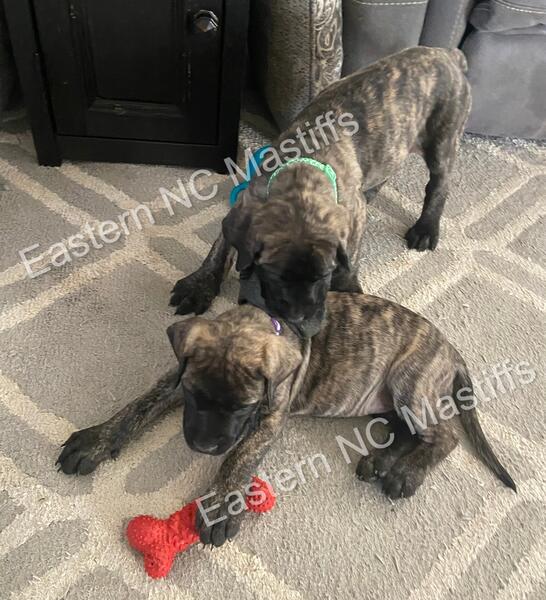 message brttn5341 about this ad 3 Brindle AKC English Mastiff females Located in Greenville, NC Chartreuse Brindle Female Pink Brindle Female Light Purple Brindle Female Vet checked Dewormed Vaccines AKC paperwork (Limited rights) Microchipped Socialized daily with dogs, children and adults Begun Potty training Crate familiarization |