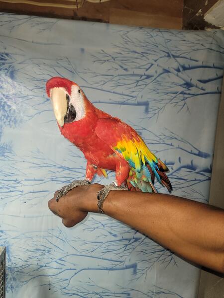 Sweet female Scarlet Macaw for sale! Great family pet or potential breeder. $3000
