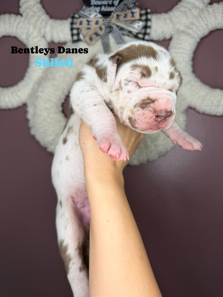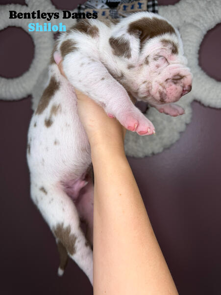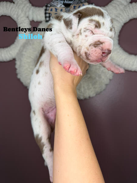 message bntlydns about this ad Akc registered, chocolate Harliquin, 1 male . PET ONLY, NOT OFFERING FULL RIGHTS/ BREEDING. Located in Bloomington IL. Ready January 5th. Contact us on FB under Bentleys Danes Of Illinois |
