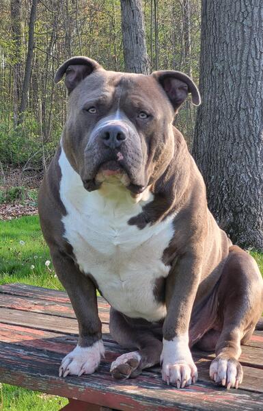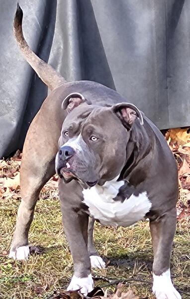 message dsg123 about this ad Extremely handsome blue American Bully XL Stud. 21" tall. 122 lbs, 25" head. 5 years old. UKC Registered. Great temperament, great disposition. Heavy bone structure, straight back and legs, blocky head. Lots of muscle and charm. Approved females. I have pics of his daughters available. (not for sale) |