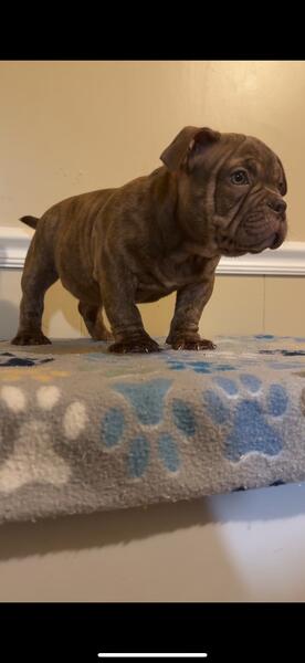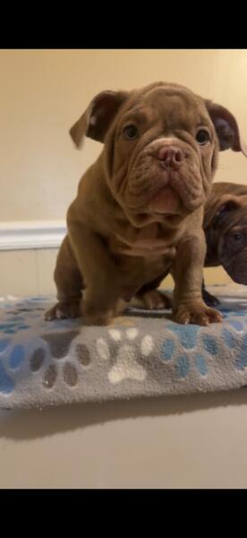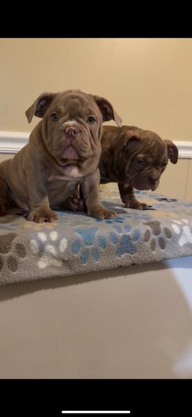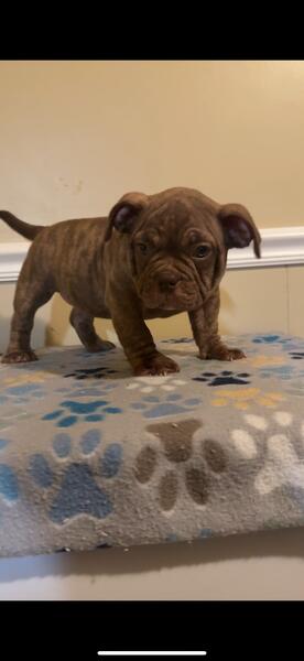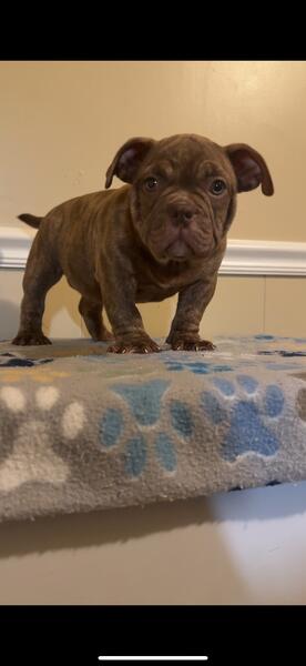 message blokkboybullies about this ad I have 2 male micro bully pups available One is brindle CLEAN micro full tail nice muzzle and short back. The second one is lilac brindle more on the EXOTIC side Crazy head short tail real bull. Pedigree is in picture mom and dad Contract me at 478 595 2448 for more info. |