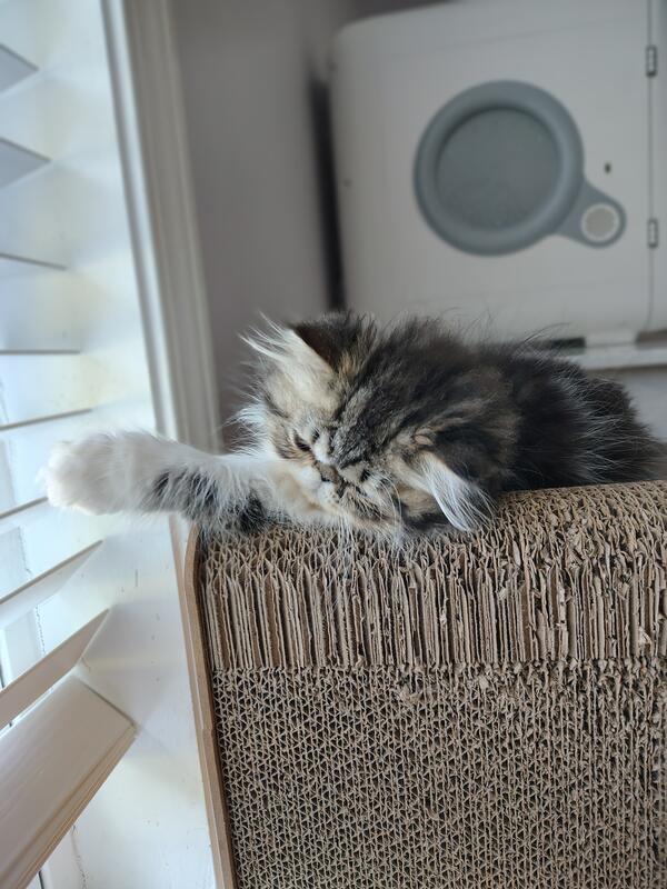 message casadolobo about this ad Astrid is 10 months old now and she's so nurturing and sweet! She is the most beautiful cat! Pictures do not do her justice. Her coat markings and her tiny face are adorable. She's got the tiniest chin. Her coat is lush and very long when fully grown, she's shaved now. I bathe them and clip their nails so they're used to it. Makes it easier for later when they have tons of fur to tame. Astrid doesn't know her name so no worries, you can pick her name and call her whatever you think fits her She loves dogs and purring! |