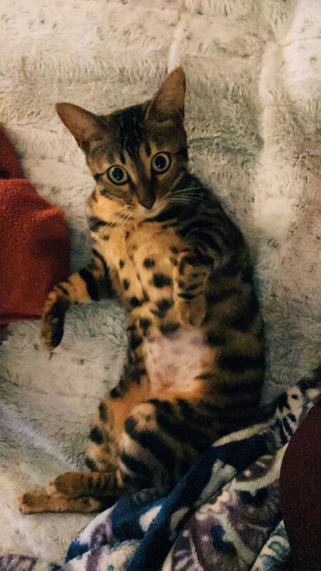 message sawadabanana87 about this ad Cleo is a 3 year old bengal. I bought her off this site 3 years ago from a breeder. She is very vocal. She has grown to have anxiety issues with my nonverbal child of his fits and behaviors. When she gets overly stressed or upset she urinates out of the liter box. She was taken to the vet in regard to this and was advised it could be the house hold life causing her behavior to change. I must rehome her to a house thats more calm and best for her. I am asking for the price of what i paid for her, $1000 plus her spay/chip fee. She will come with 2 liter boxes, toys, and food. |