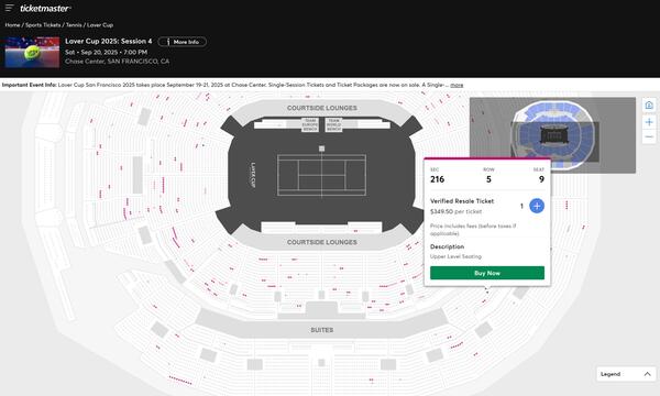 message rk1o1 about this ad Selling a verified Ticketmaster resale ticket for the Laver Cup 2025, Session 4this Saturday, September 20th at 7:00 PM at Chase Center, San Francisco. Buy instantly via Ticketmaster: Dont miss outgrab your ticket today! |