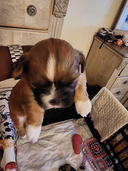 message fendi361 about this ad 4 Boys & 1 Girl full breed Shih Tzu. Brown and white. Some mostly all brown . Comes with 1 shot, registration I have mom and dad. Good temperaments. Mom weighs around 9pds and dad is around 7 pds. If interested your welcome to inquire. Thank you. They was born 7/29/2025. They ready to go to new home. |