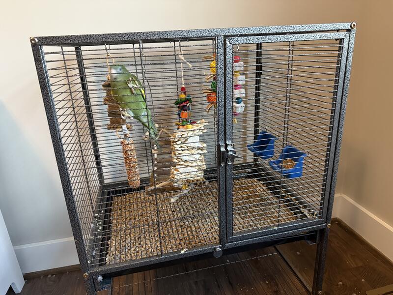 message lrnhrshmtmd about this ad Medium sized bird cage on wheels. Excellent condition. Bottom tray slides out for easy cleaning. Doors located on side and top. Includes various toys, chew items, and food/water bowls. All in like new condition. Located in Maidens, VA but willing to meet within a reasonable distance. Asking $125 for all. Bird NOT included. |