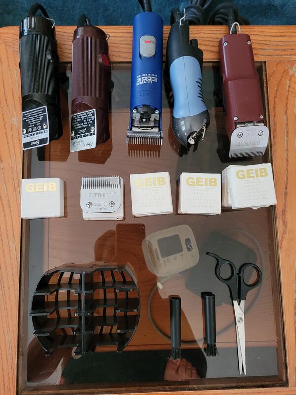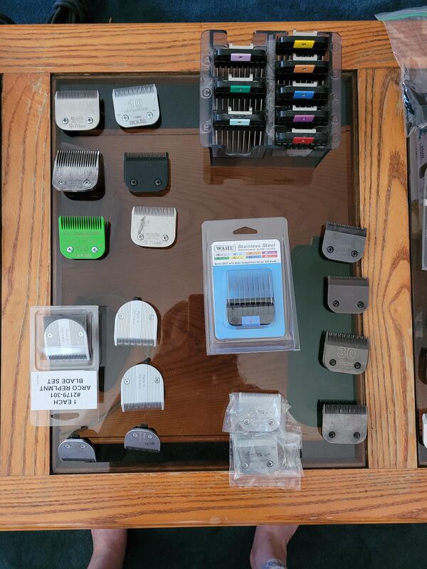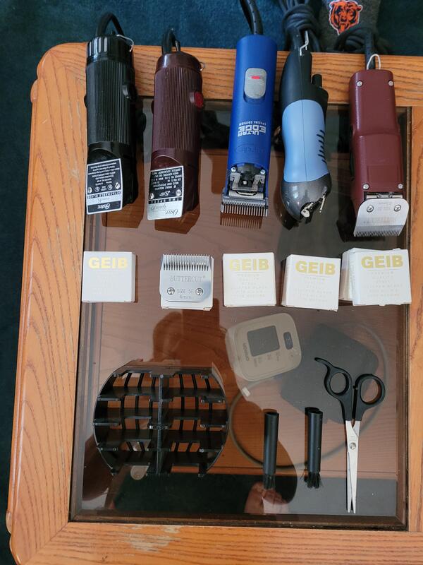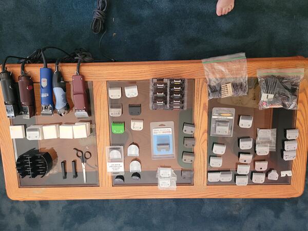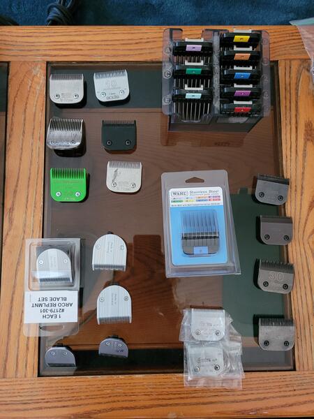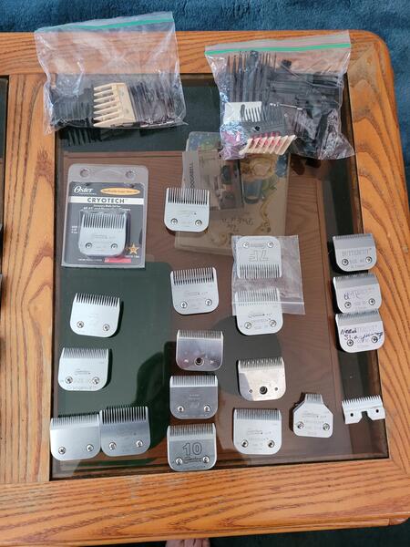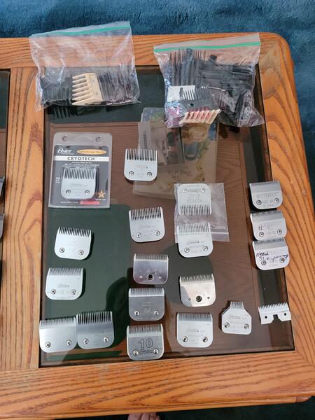 message poof30 about this ad 1- Andis 2 speed model AG2 1- Andis Ultra Edge special edition 1- Wahl Storm 1- Oster Golden A5 2 speed 1- Oster Golden A5 Andis blades 1- 10 1.8mm 1- 7FC 3.2mm 1/8 1- 10 1.5mm 1- 3 3/4FC 13mm 2- 10 1 1/2mm Oster blades elite 1- 15 1/2mm 1- 30 1- 40 1- 40 1/10mm Oster blades buttercut (New in box) 1- 40 1- 30 1- 3F 2- 4F 3- 5F one is missing box but is new 3- 7F Oster Cryotech blades/and other 2- 40 1- 4F 9mm Cryotech New in box 1- 4F 9mm 1-7F Cryogenx 2-7F Cryotech 3mm 1- 8 1/2 NB NO.80 1- 15 1- 15 Cryotech 1/2mm 2- 10 NO.80 1- 10 Cryogenx 1- 5F 6mm 1- 30 Cryogen-X 1- NO.80 30 1- Cryotech 5/8 wide 1- Buttercut 40 0.1mm Cat blades 1- New in box 2- used larger size 1- 050 1- 048 Wahl clipper blade set w/holding tray Extra Wahl clipper blade New in box 2- cleaning brushes Extra holding tray 1- Scissors/shears (no brand) 2- bags of guards This groomers set is available for $600 or best offer. Set includes everything pictured above. There is well over $500 in new blades and the clippers have been tested to make sure they are running and priced at about $75 each used. Many extra blades of all sizes. New blades in boxes are premium blades. Buyer pays shipping or make arrangements to pick up. message poof30 about this ad |