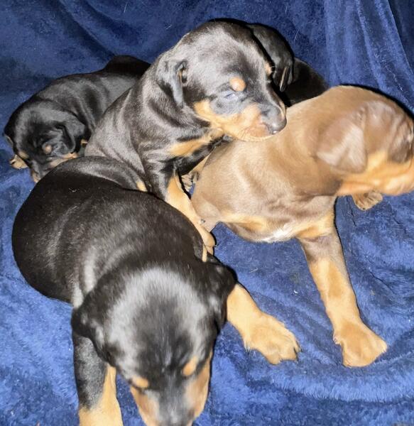 message jrrmh1884 about this ad Purebred Doberman Puppies Health Tested Parents , Dewormed , Tails Docked , and Received shots on pickup . Parents are from a show line with great temperaments. Taking Deposits Now ! Contact (256)503-180zerosix |