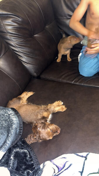 message dgm345 about this ad Beautiful Purbreed mini dachshund pups The most lovable calm temperament pups Ive had very very friendly love to play and eat Very well trained outside they go so their duties as soon as they go out. They are 8 and a half weeks and ready now! Come meet your new family member today Males and females available 508-262-1899 Three left ready now! One fluffy 2 smooth fur. Very beautiful and affectionate love kids and other pets First shots deworming and health check willing to meet in Rhode Island to close areas in Massachusetts pickup only ! No shipping. |