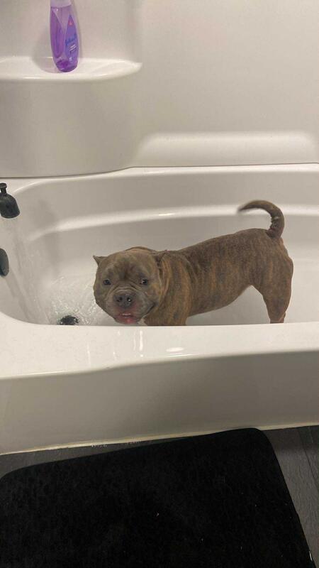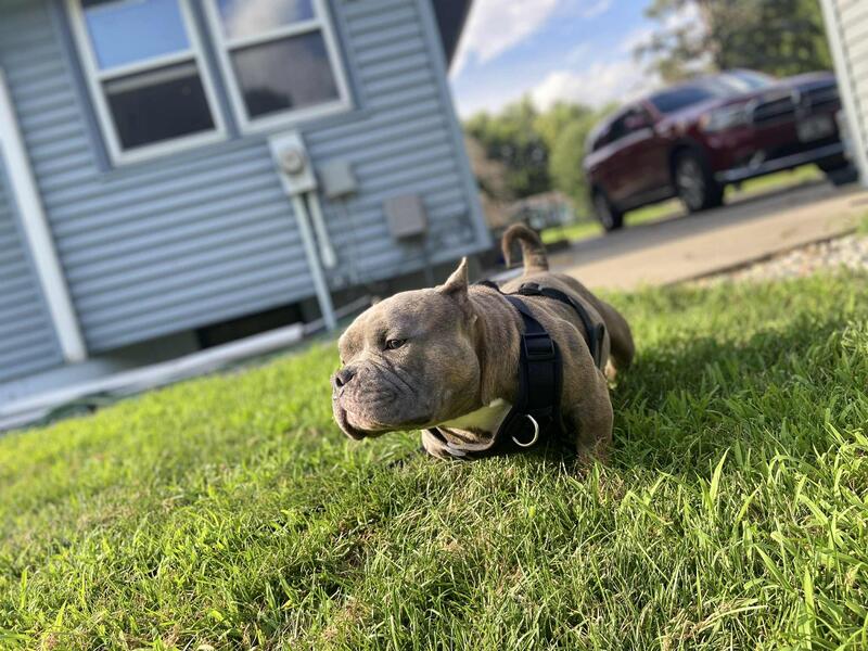 Meet Chucky. He is a 4 year old bully. Potty and crate trained. Great with kids. Interested text 507.338.3700