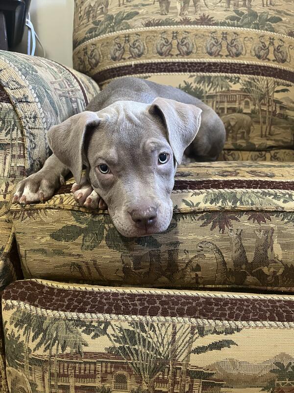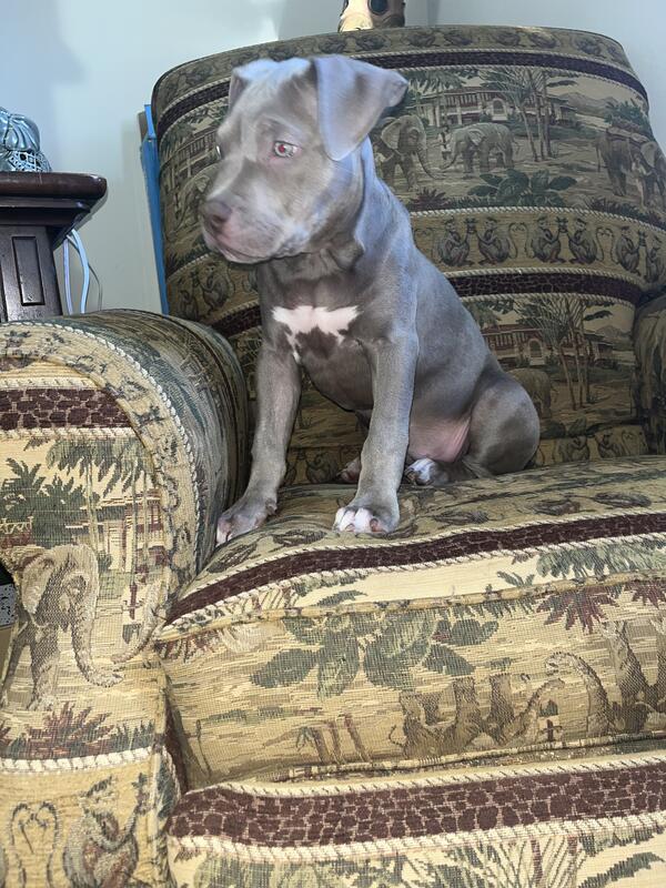 message dedmonkennels about this ad Full-Breed American Bully Puppy 10 Weeks Old (Female) Price: $550 without ABKC registration papers $650 with ABKC PAPERS Discount available if you adopt her together with her sister(message for details About Her Gender: Female Color: Blue with white Personality: Very energetic, loves to play with her siblings and run around. She seems nurturing of her smaller siblings. And she is very smart when playing with her toys . About Her Gender: Female Color: Lilac and white Personality: Very sweet and a little shy. She plays gently with her siblings and loves to cuddle up and be held. Health 5-way puppy vaccinations completed Deworming up-to-date Healthy, active, and ready to go home Bonus willing to bring her to you Location : Williamsburg Contact instructions : 757-784-0239 |