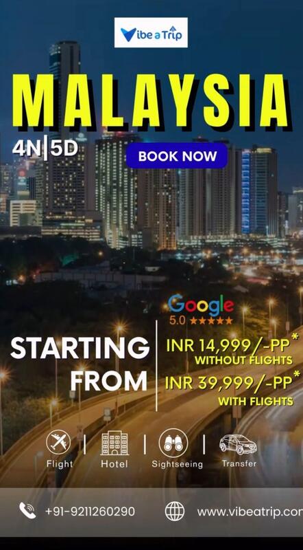 message vibeatrip about this ad Discover the best Malaysia tour packages from Delhi with Vibeatrips exclusive premium Malaysia tour packages. Experience a beautifully planned Langkawi and Kuala Lumpur package that includes 45 star hotels, meals, guided excursions, and smooth transfers for a hassle-free holiday. Packages start at 14,999 without flights and 39,999 with flights. Perfect for couples, families, and luxury travelers seeking a memorable Malaysia escape. Book your Malaysia trip today! +91-9211260290 | www.vibeatrip.com |