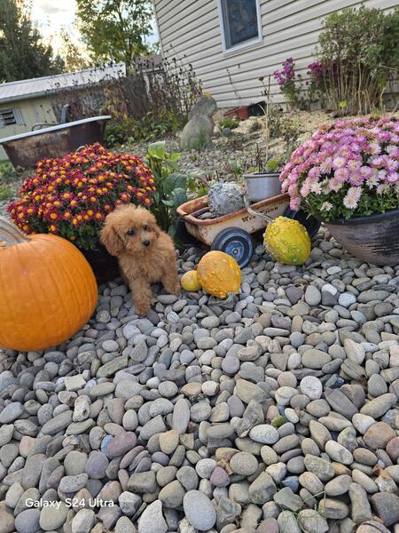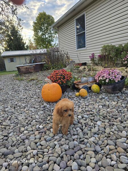 message hppytls541 about this ad Female Toy Poodle, apricot sweetheart little girl precious estimated weight is 5 to 6 pounds full grown and loves to play has so much character.i s just over 2 pounds now. Vaccines current and wormed Vet checked good and comes with a Vet Certificate of Good Health and Health Guarantee and puppy starter kit. Pa State licence 2965. |