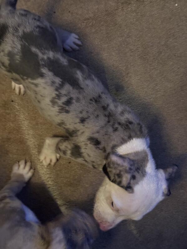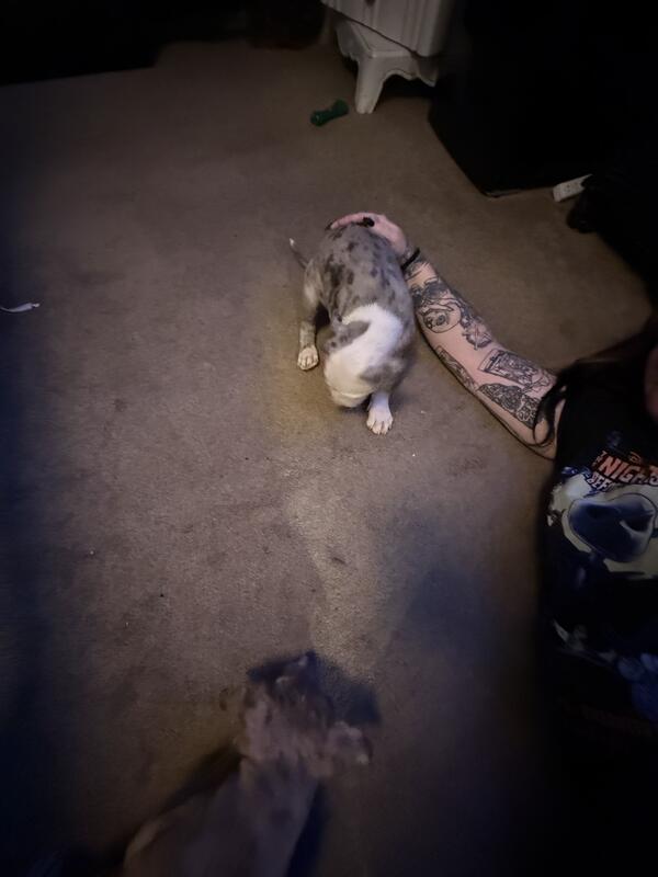 message exiled about this ad Pure bred American bully puppy Blue tri merle male Brown Tri merle male available vet check, first shots and deworming done Born Oct 19th, Available Dec 14th $1500 About 10 weeks old now |