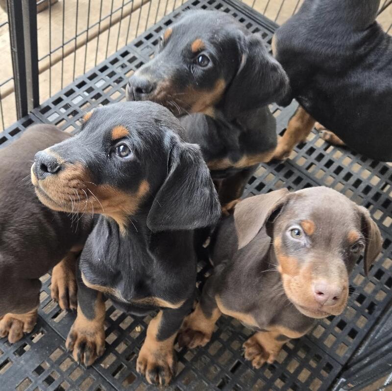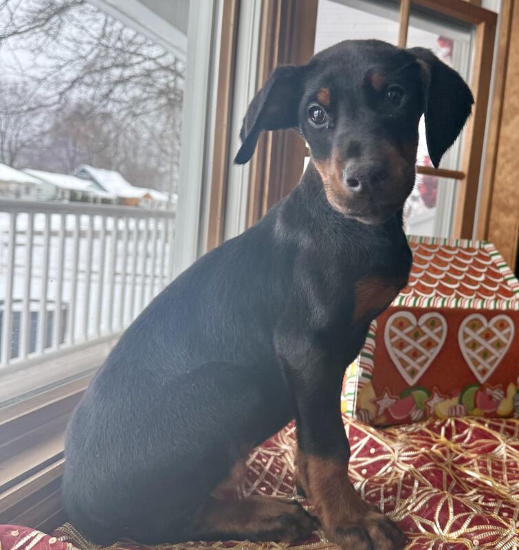message stinadaisy11 about this ad Champion parents imported directly from Europe. pups come up to date on shots. All pups have been dewormed every two weeks since birth. Sora (mom) is health tested with excellent hips and normal elbows, genetically clear on everything, has BH and IGP1. Grimm (Dad) who titled, is health tested & clear on breed DNA profile. These are purebred European Doberman puppies with parents imported from Siberia. These parents have gone through extensive training and health testing to insure healthy pups. The puppies start at $2000, at pet price only. Tails docked and dewclaws removed. We are not offering AKC rights, we intend that these gorgeous pups to be enjoyed as family pets. They will come home with a puppy pack to get them started. and the puppy pack, it comes with proof of vaccination and a health check from the vet, a collar and a leash, starter food and a toy. We are in the Ann Arbor area, willing to meet for puppy pick up. They became ready to go (at 8 weeks) to their forever homes on nov 9. We can supply a list of vets that specialize in ear cropping if that is something you wish to get done on your doberman. we look forward to finding a perfect pet for you and your family. Thank you for your interest! message stinadaisy11 about this ad |