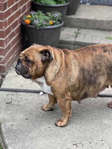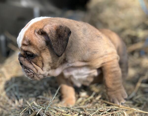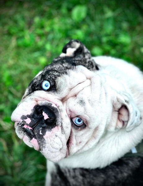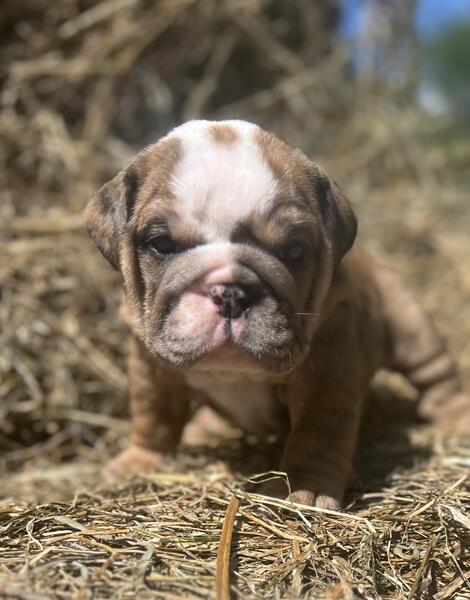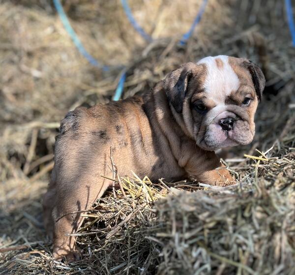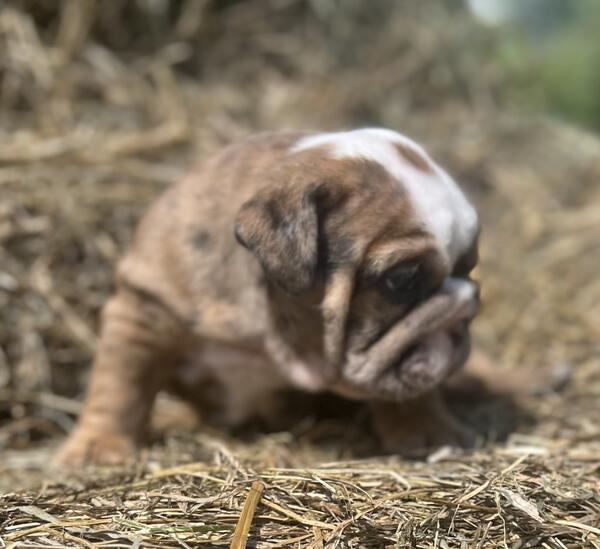 message michelle5 about this ad . Meet Dakota, the English Bulldog diva with a fashionably late birthday on July 17th. Shes rocking a stunning Chocolate Merle & Brindle coat that turns heads faster than a squirrel at a dog park. (Its so hot today she was breathing hard during this video) With a build as thick as her dads, Dakota is destined to be a heartbreaker! When Dakota moves into her new palace (I mean, home shell come with a two-year health guarantee, 30 days of free insurance, two vet health checks, two vaccinations, a microchip, and a puppy pack stuffed with goodies. If youre searching for a bulldog whos truly one-of-a-kind and might just demand her own reality show, Dakotas your girl! |