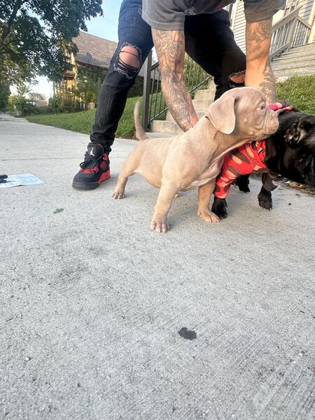 message roscoeskennel414 about this ad I have 2 next level males available off my 2x miagi and 3x crunch blood litter. They are nothing less than the best ! Crazy features on both boys the lilac Tri male has the craziest dome I ever seen on a dog period hes going to be a head turner for sure with his great personality and both of the males structure is absolutely perfect clean feet top line amazing rear and clean bite fully functional pups can even go up stairs at 9 weeks old they are up to date on shots and dewormed and are ABR registered with papers in hand call or text @ four one four three one nine nine one seven one. I also do pet home price for a thousand cheaper! |