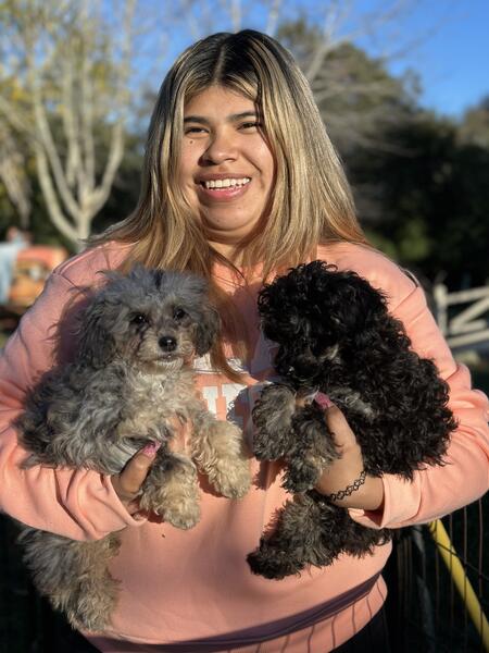 message gtsrds0552 about this ad These have to be the cutest puppies Both parents are health tested through embark They are 3 1/2 months old and very socialized They dont shed Dad is AKC registered toy sized My mom is a CKC registered Merle Puppies sizes range from toy to miniature |