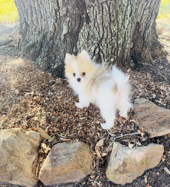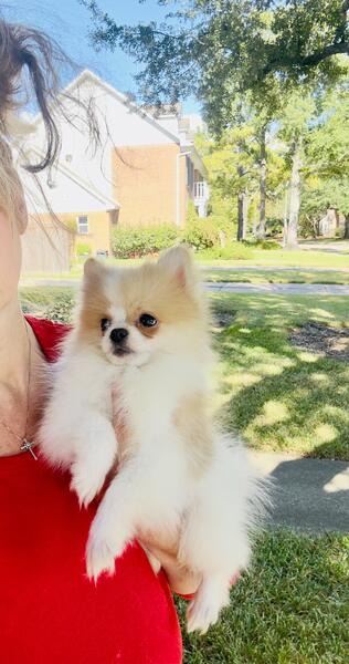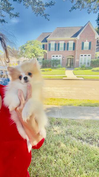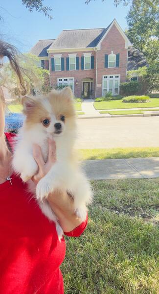 message htmd about this ad Teacup, female, parti Pomeranian Little girl named Pumpkin Kisses. Parti color. Red sable and white. Very small mom and Dad just 3 and 4 Lbs. Double Coat - Teddy Bear Face. Houston Texas. Pick up welcome call us at 281-898-5845. |