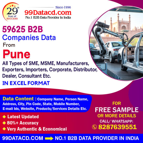 message dataprovider about this ad Want to buy list of companies in Pune? 99Datacd, a leading database provider company in Delhi offers a list of companies in Pune at affordable prices. Buy 59,625 PUNE B2B Companies Data - In Excel Format. Our data covers SMEs, MSMEs, Corporates, FMCG exporters, importers, distributors, professionals, dealers, and manufacturers data. Purchase our business-to-business industrial data today and accomplish your organisational goal. The list of companies in Pune compiled by experts is available in an easy-to-download Microsoft Excel format from our website. Get a Flat 30% discount! Don't miss our super discount offer. Hurry Up! For more info, call our experts Call/ Whatsapp: 8287639551 Email ID: sales@99datacd.com Address: 206, RG Trade Tower, Netaji Subhash Place, Delhi - 110034, India Website: |