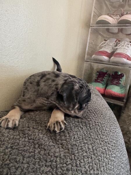 message wldcr5237 about this ad He carries blue, merle, panda, fawn, and black. He can produce a colorful litter. This litter was born on 11/27. Text (347) 352-2832 |