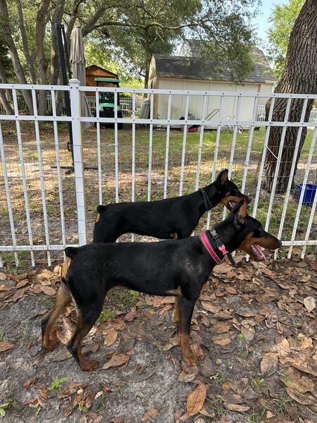 message rbj1200 about this ad $3,000 each 2 female (sisters) AKC Dobermans available. 9 months old house trained, crate trained, docked and cropped. Up to date on shots, heart guard every month. Could have potential to show or compete with the right training. Girls are scheduled for training July 12. If I still have them they have to go and price will increase. These are my personal dogs and had no intention on letting them go. Was going to show and compete them. Unfortunately or situation has changed and now have our grandfather who requires 24 hr care. |