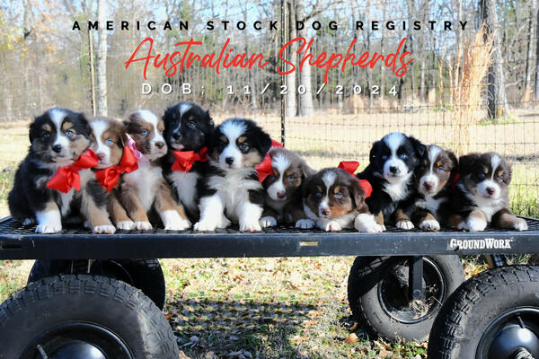 message clrmsn4533 about this ad VALENTINES DAY SWEETHEARTS! ASDR Registered Australian Shepherd Puppies Born: 11/20/2024 8 Weeks old on 01/15/2025 $800 Cash Tails Docked, Dewclaws Removed, Vaccinated, Socialized, Family Raised Canton, Texas |