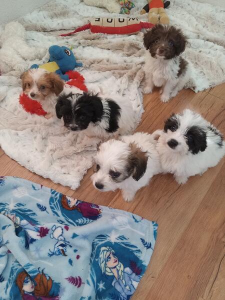 message howling about this ad Papipoos. 10 wks old. Have had first and second shots and dewormed biweekly. Should be 6-8 lbs as adults. The smallest male should be around 5 lbs as adult. All males Black and white parti male Chocolate and white parti male Red and white parti tiny male Silver, black, tan and white male They are 450 each cash at pick up Pick up in Patton, Missouri 63662 573 Two, SEVEN, Zero 8853 |