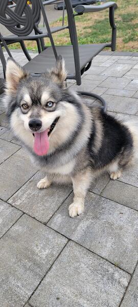 The father is a Pomsky bred to his daughter who is half pomsky and half yorkie.