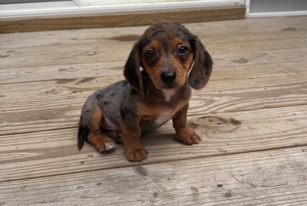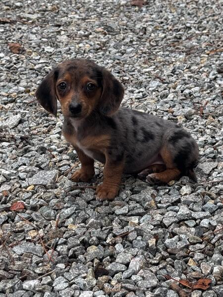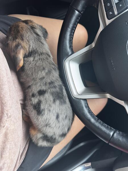 message jbanta about this ad Born 6/3/25. Is UTD on shots, has been wormed and does great using puppy pad. She is a huge snuggle bug. Both parents were full blooded regular sized dachshunds. No papers. She will come with a puppy starter bag and her shot records. $800 obo |