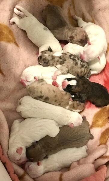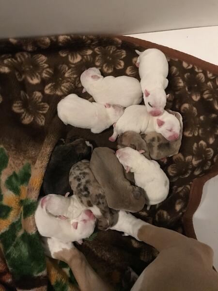 message drkmchlk1 about this ad DOB 11/12/25 Ready to leave 01/07/26 ABKC Registered 3 Extreme White aka Extreme Piebald $3000 1 Extreme White w/ Mascara Eye $3000 3 Blue Merle Piebald $3000 1 Tricolor Brindle $2200 1 Fawn Merle $2200 1 Merle $1800 2 Sable $1800 Sire NSK Tonka Sebastian 55lbs Dam Cordelia Diamond 60lbs (Cordelias mom extreme white dog pictured with Cordelias sister) Puppies more than likely will be Pocket sized 55-70lbs. Cordelias brother is 75lbs |