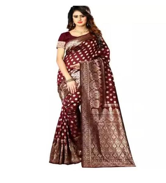 message prerana about this ad Saree length: 5.5 m Blouse piece length: 0.8 m Art Silk The last image gives a detailed look of the blouse piece that comes with this saree (The model is wearing a blouse from our in-house wardrobe) Dry clean httpsajiio.in/yll77Gl |