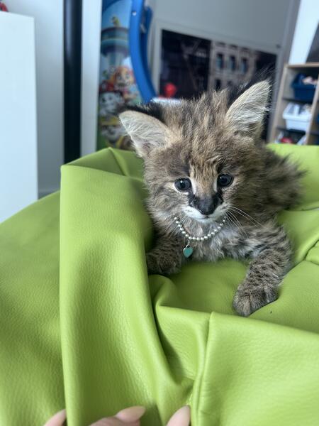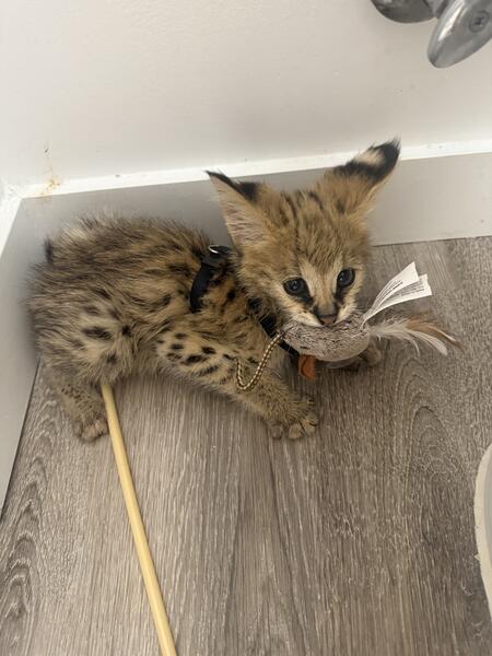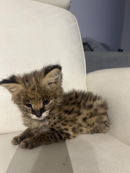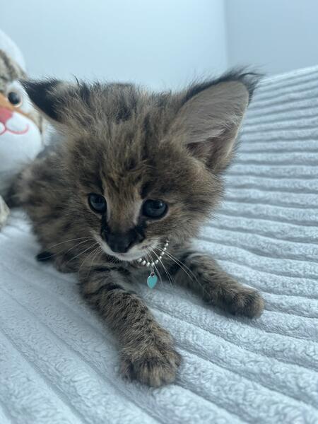message bmgml159 about this ad F1 Savannah for sale 1 Male, blue eyes -human print since his first day -6weeks old -potty trained -leash trained -very sweet baby. will be a perfect lapcat -loves bottle feeding -ls been raised with kids, other cats and dogs -hand delivery available US and International -Accepting deposits in zelle, venmo, cash app, other types -will be ready to go to her new home in 2weeks -will come with Tica Papers, heath certificate and 1year health guarantee in contract. - text for more info,videos, Facetime |