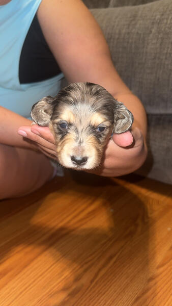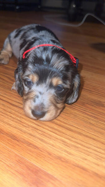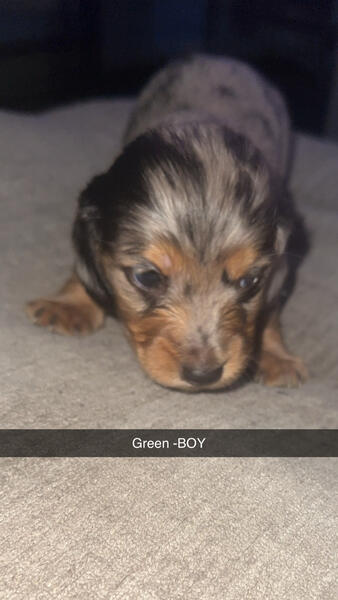 message ashtyne26 about this ad Long haired miniature dachshund dapple puppies Born 9/11/25 3 males CKC registered Up to date on wormer and shots by time of homing |